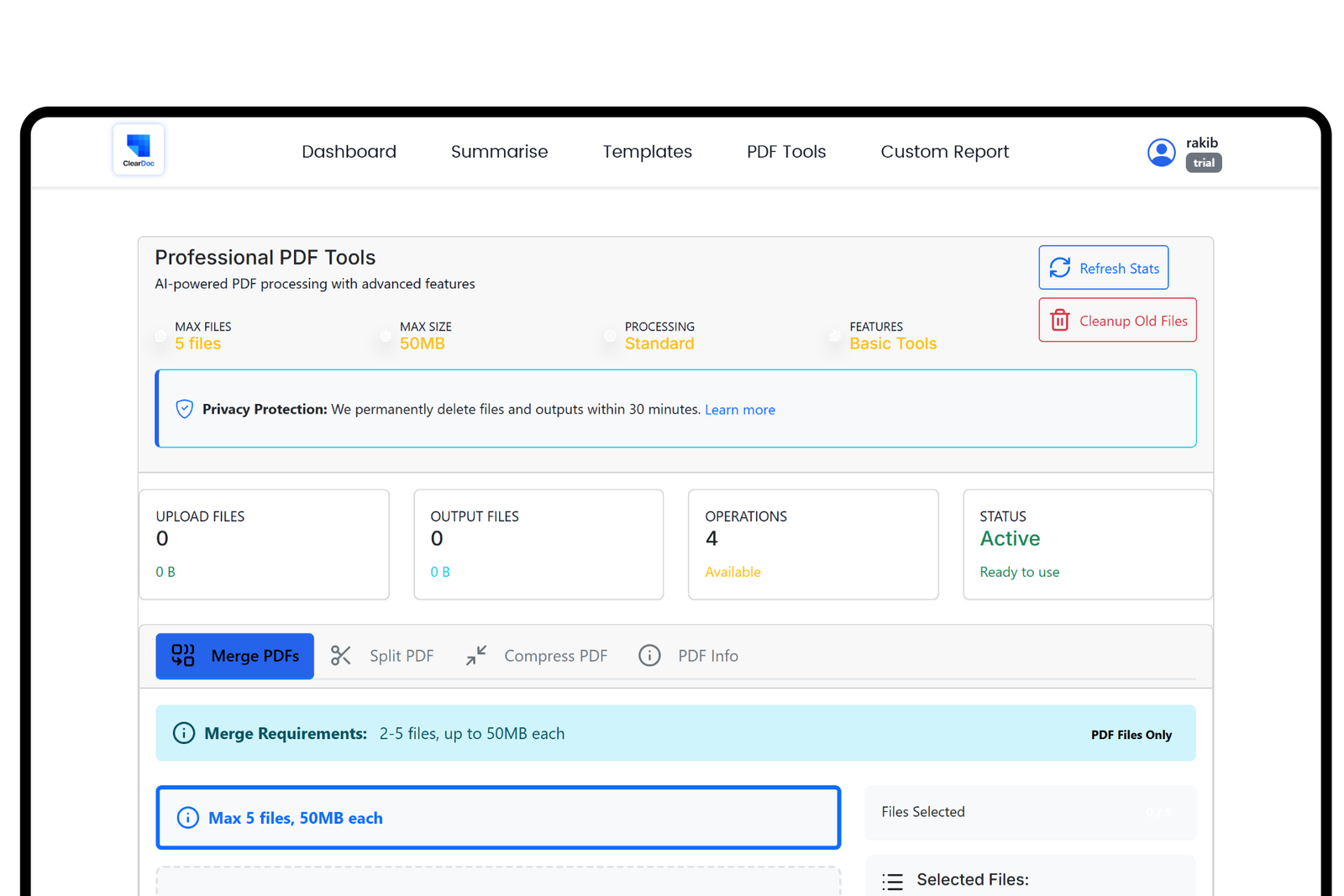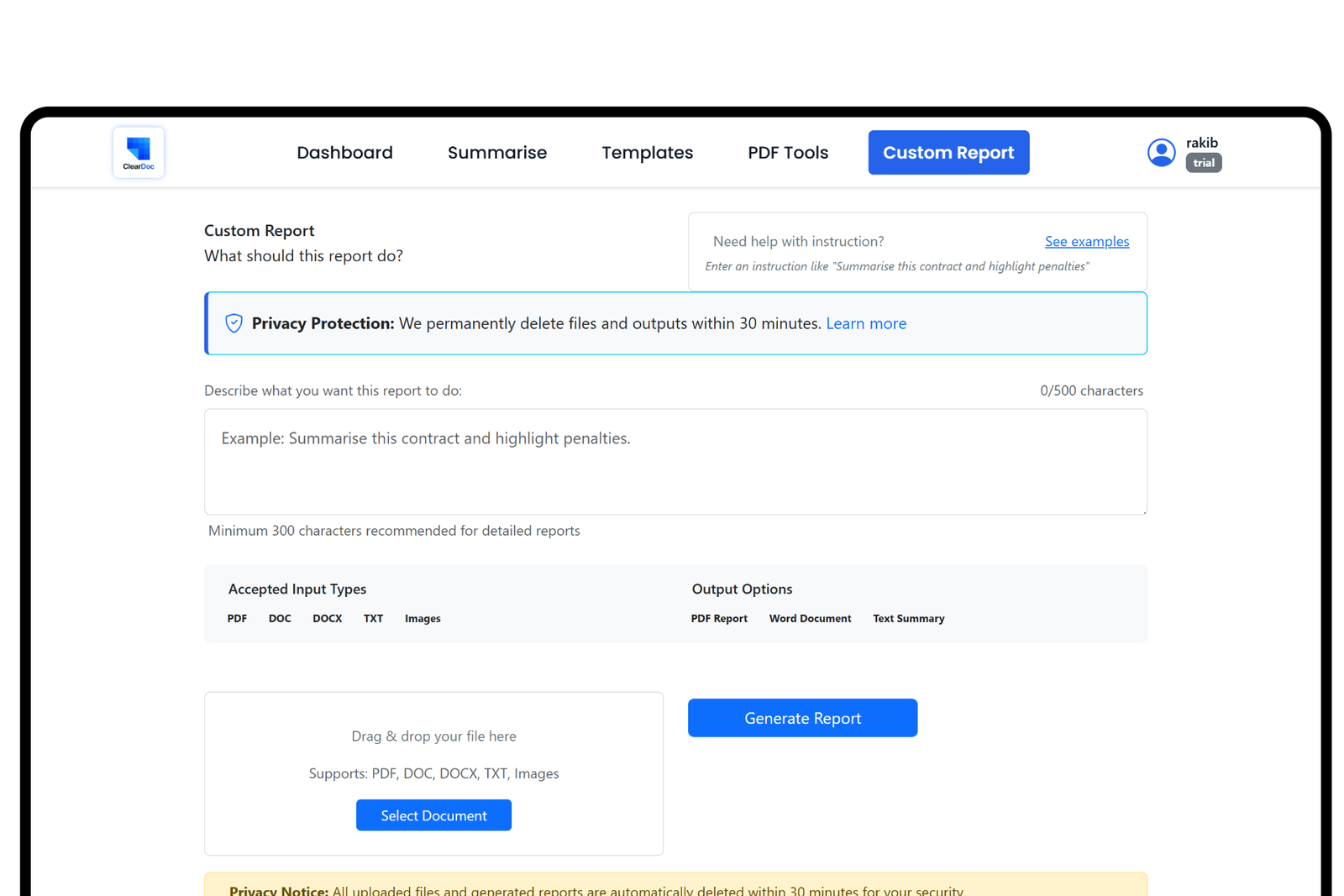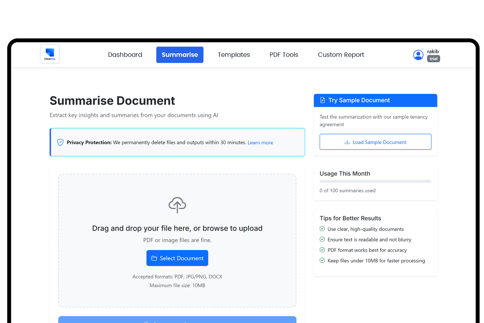 Yes. All files are processed in-memory and auto-deleted after 30 minutes. ClearDoc uses HTTPS, follows GDPR compliance, and doesn’t store personal data.